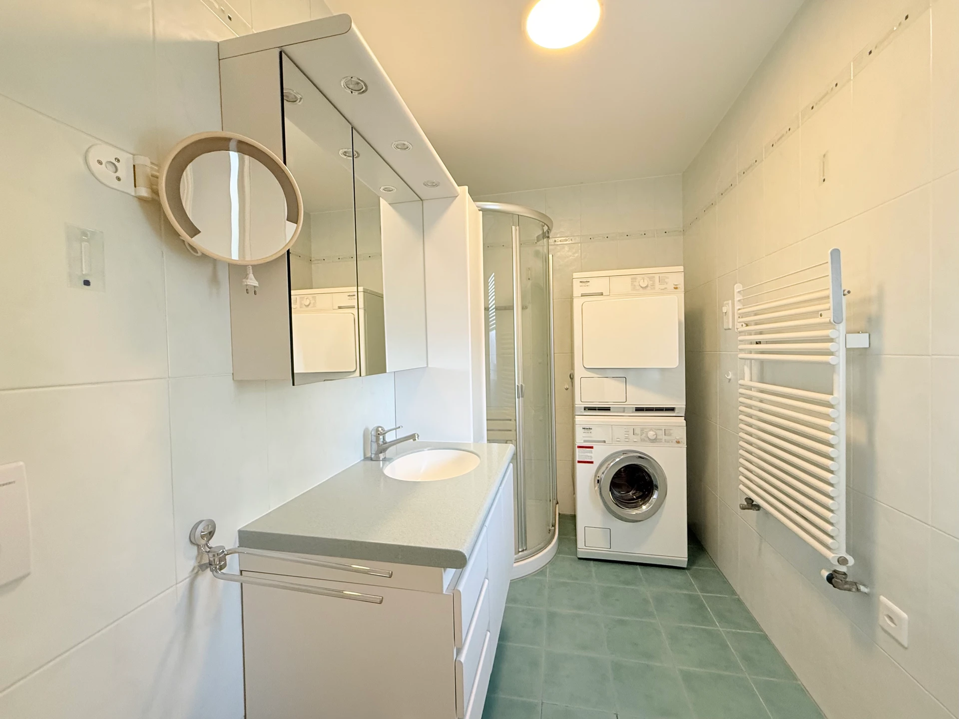 L’appartement dispose de 2 places de parc intérieures. Les résidents bénéficient également d’un local à vélos et de nombreuses places de stationnement visiteurs, assurant un accès pratique pour les invités.