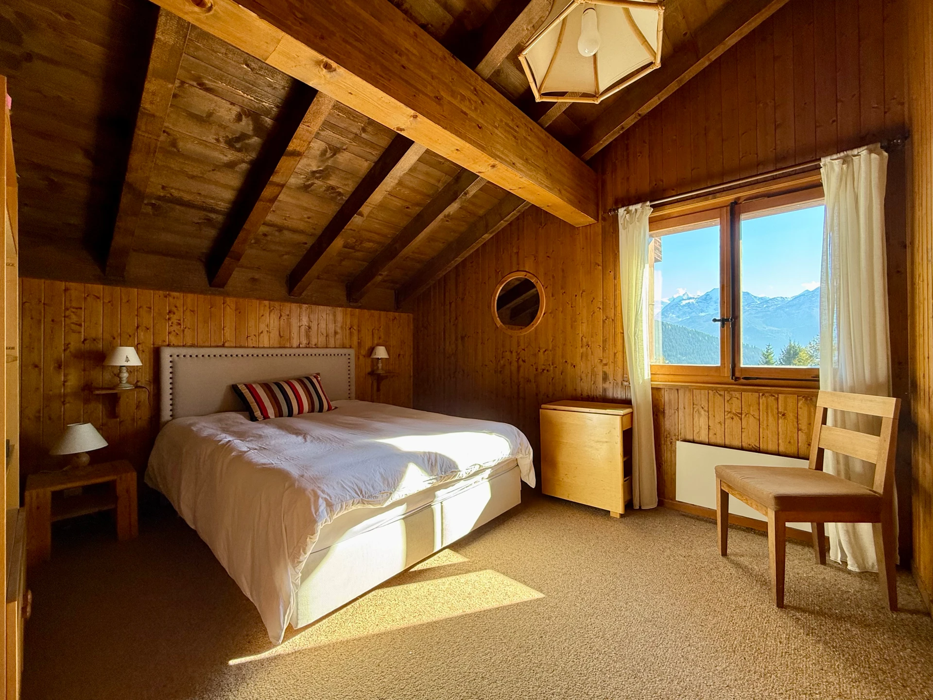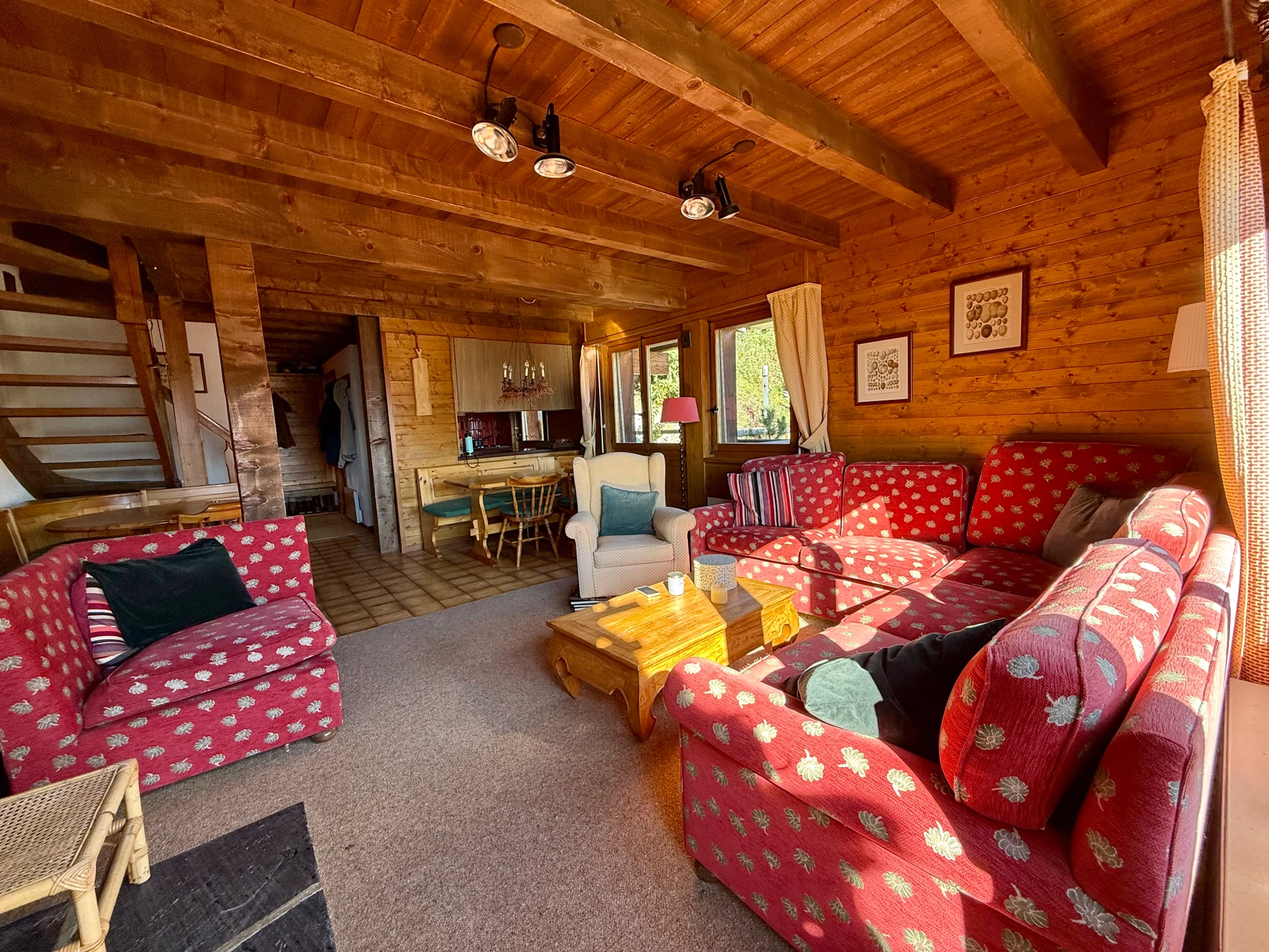 Dans un chalet de 6 appartements seulement, ce duplex chaleureux offre 108 m² habitables et une vue panoramique imprenable sur les montagnes environnantes. Il se compose comme suit :